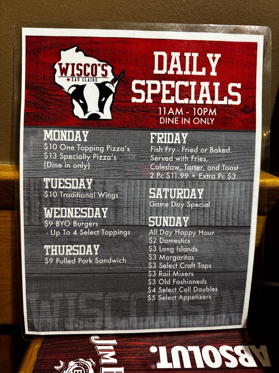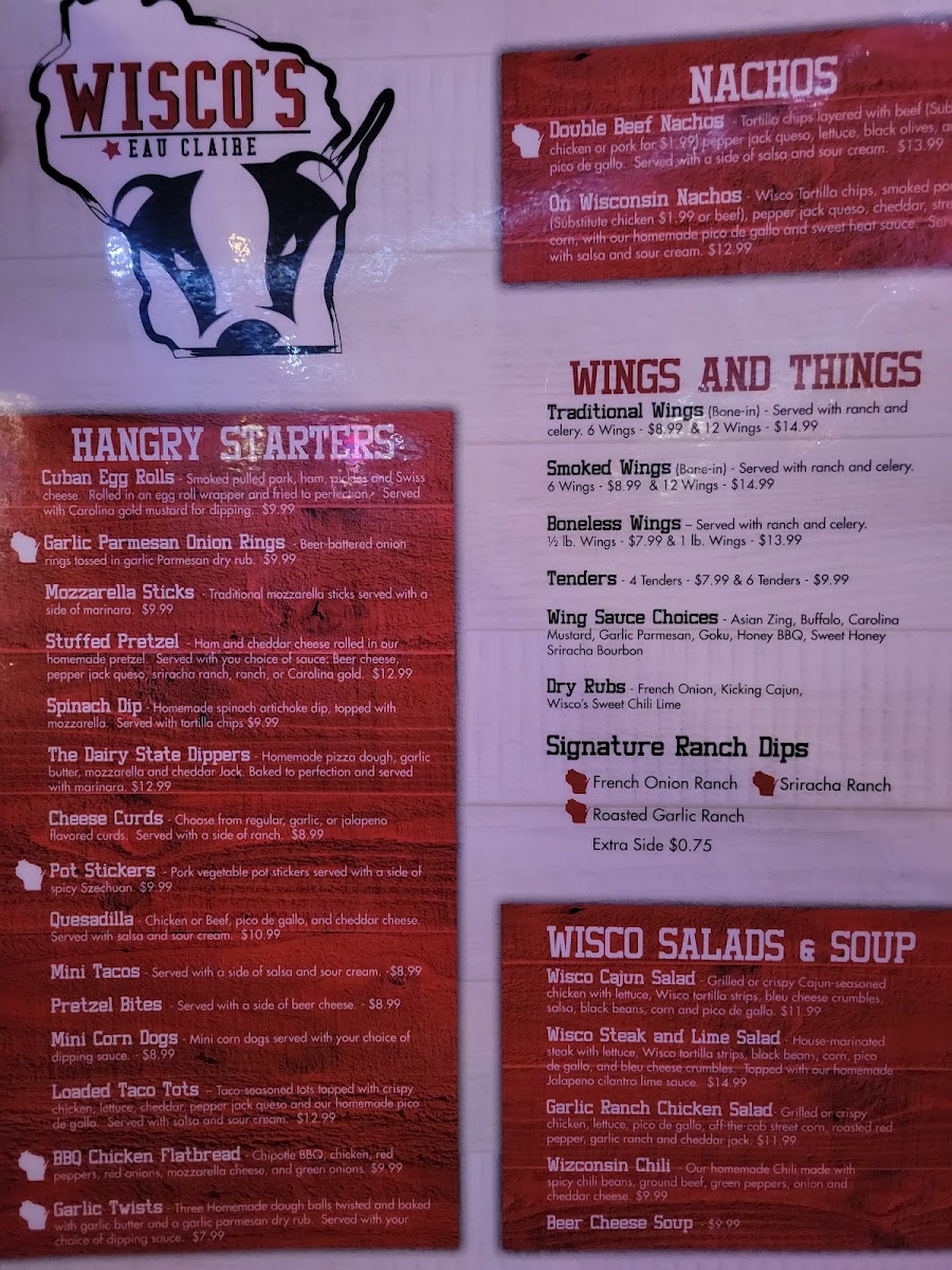 Welcome to Wisco's Bar & Eatery Eau Claire, a dining haven located at 1920 S Hastings Way, where flavors and culinary creativity collide. Their menu is a celebration of local flavors and hearty American comfort food. Star dishes include the Smoked Brisket Dinner, accompanied by two delightful sides, and the indulgent Bacon Bleu Burger that perfectly marries savory beef with rich bleu cheese and crispy bacon.